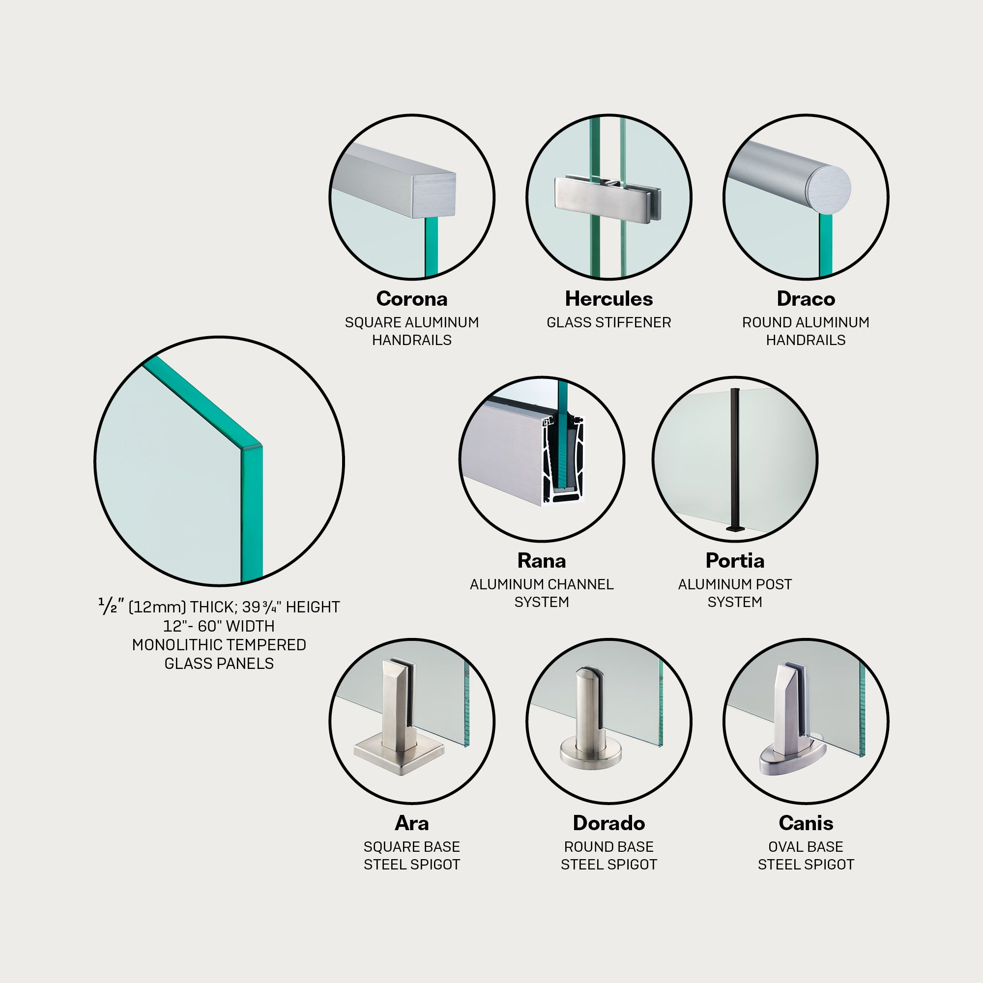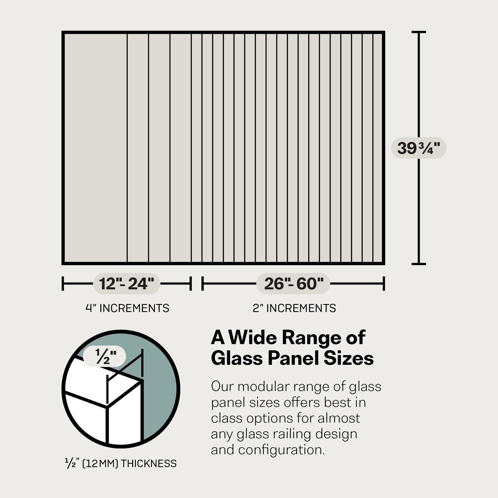 + COMPATIBILITY - Use 39.75 in. glass height for Glass Warehouse post systems, all other systems compatible with our 39.75 in. or 36.5 in. glass heights