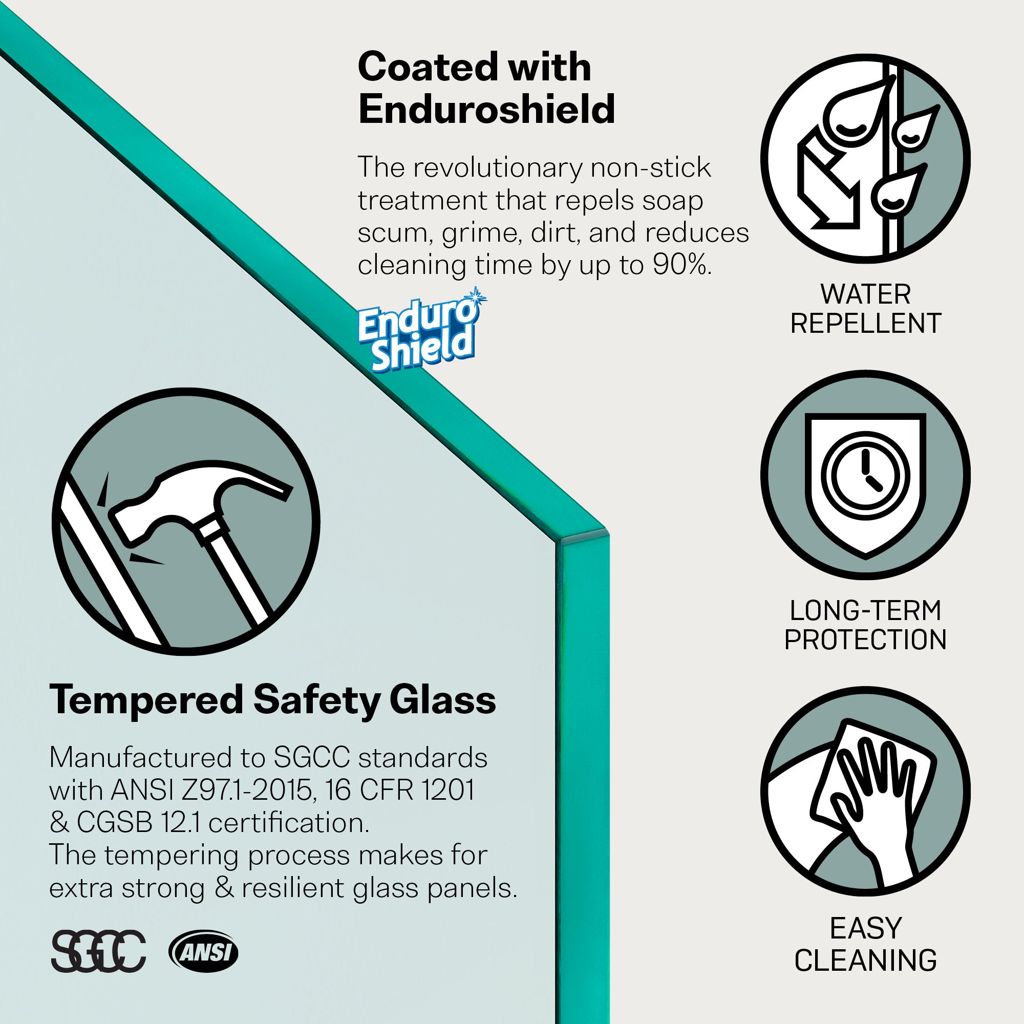 + LASTING CLARITY AND STRENGTH - Made from durable tempered glass and protected with EnduroShield coating on both sides for superior resistance to stains, corrosion, and mineral buildup for easier upkeep in any climate