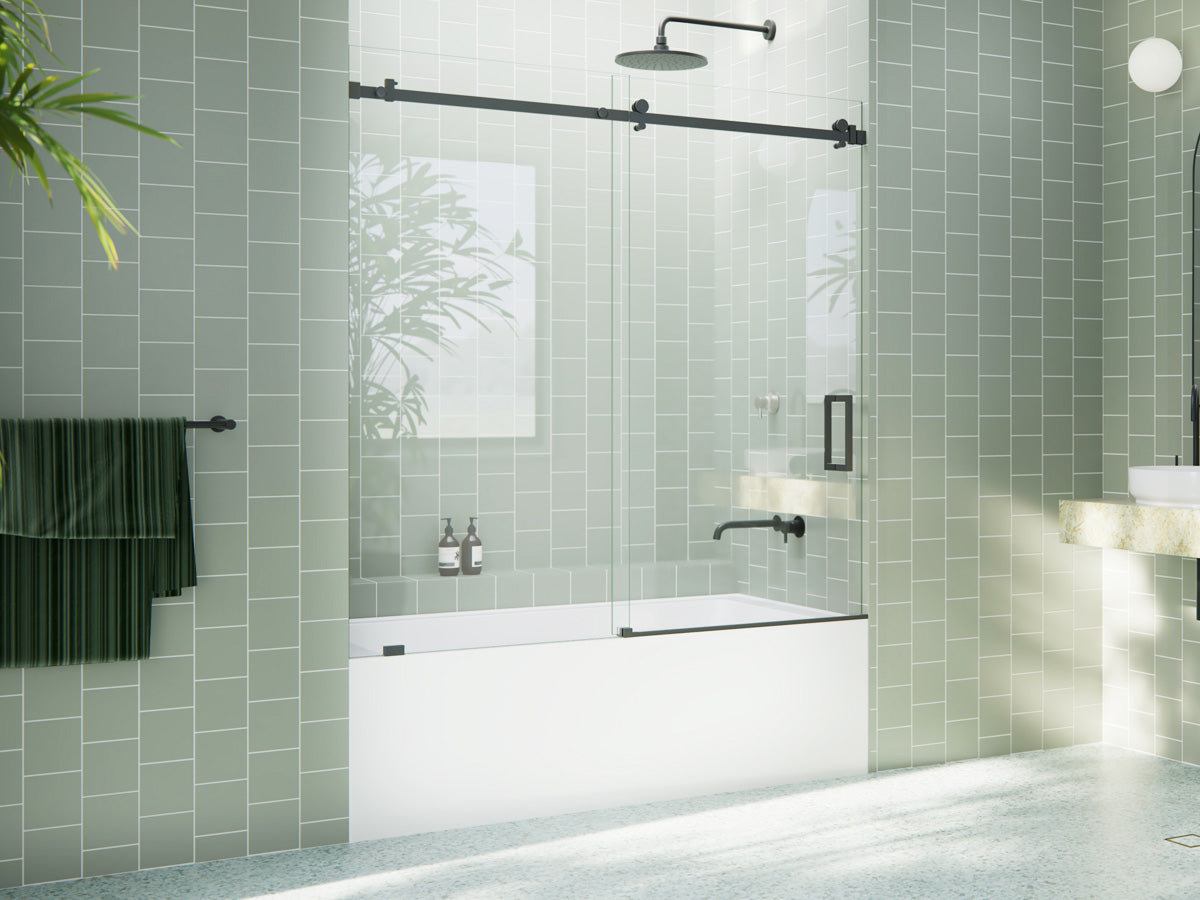 Frameless sliding bathtub doors designed to save space while keeping water contained. Smooth-gliding operation, durable hardware, and clean modern style.