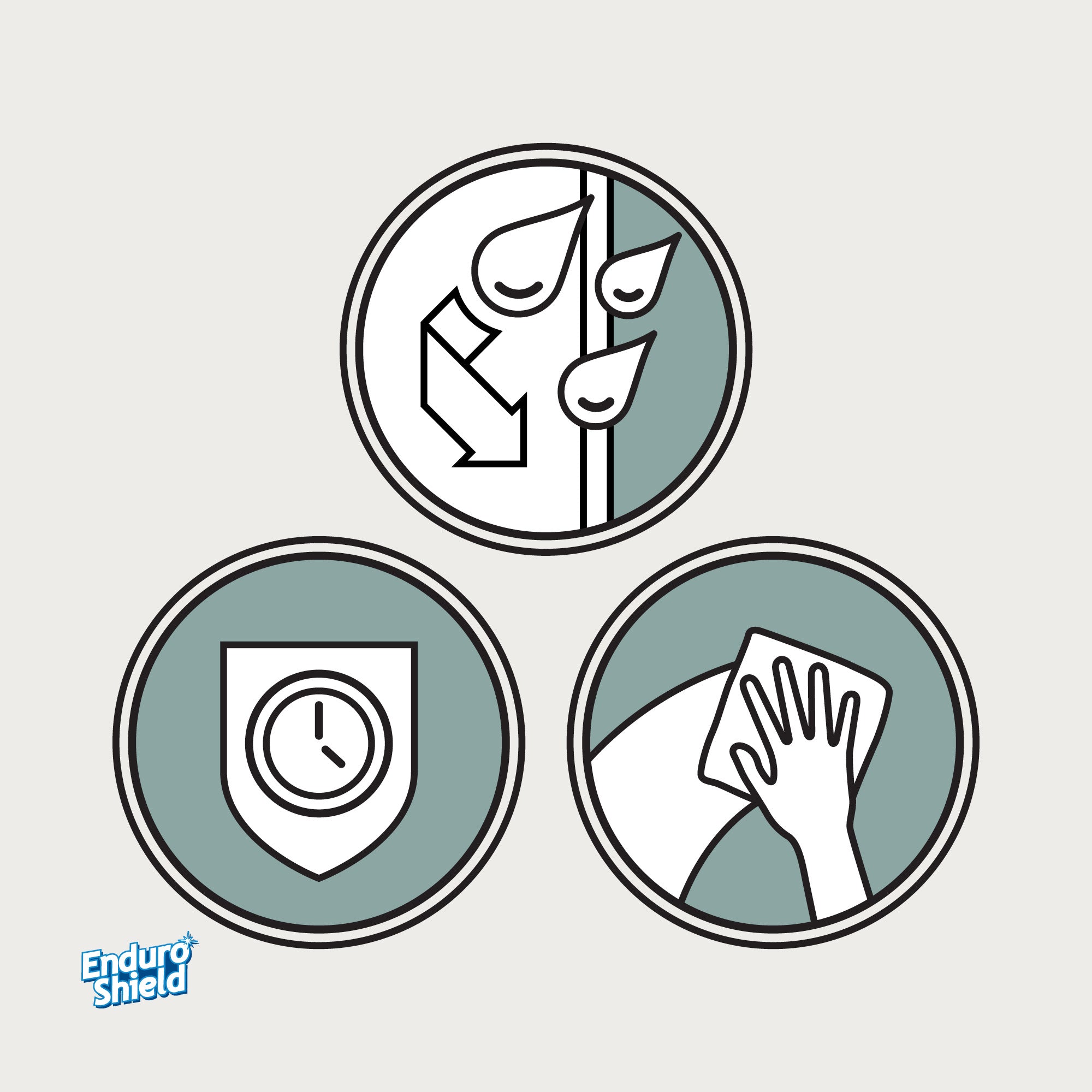 Glass treated with EnduroShield®, the revolutionary, non-stick treatment that makes cleaning shower glass easy, repelling soap scum, grime and dirt, and reducing your cleaning time by up to 90%